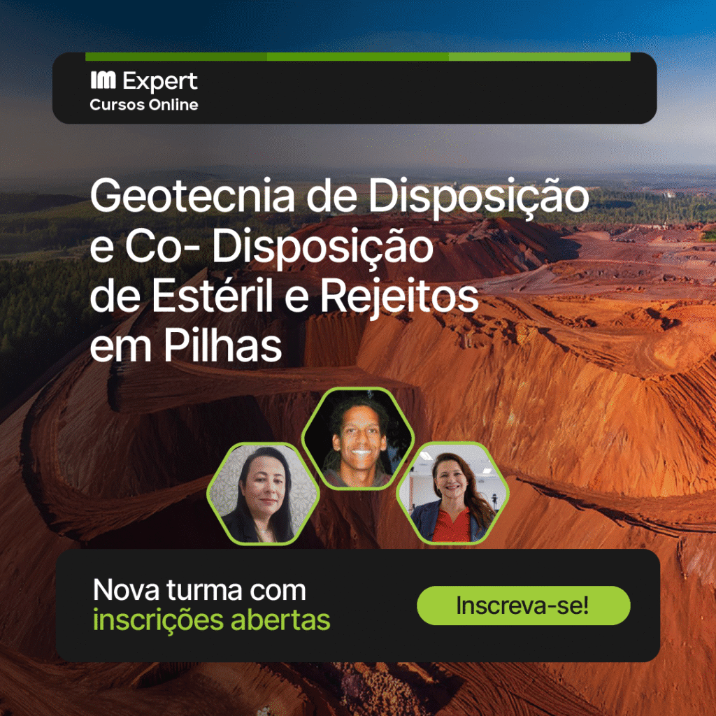 Se você busca se aprofundar nesses métodos e aplicá-los na prática, o Instituto Minere oferece o curso Geotecnia e Disposição, Co-Disposição de Estéril e Rejeitos em Pilhas, que aborda desde os fundamentos da estabilidade até análises avançadas, sempre com enfoque prático e professores especialistas.